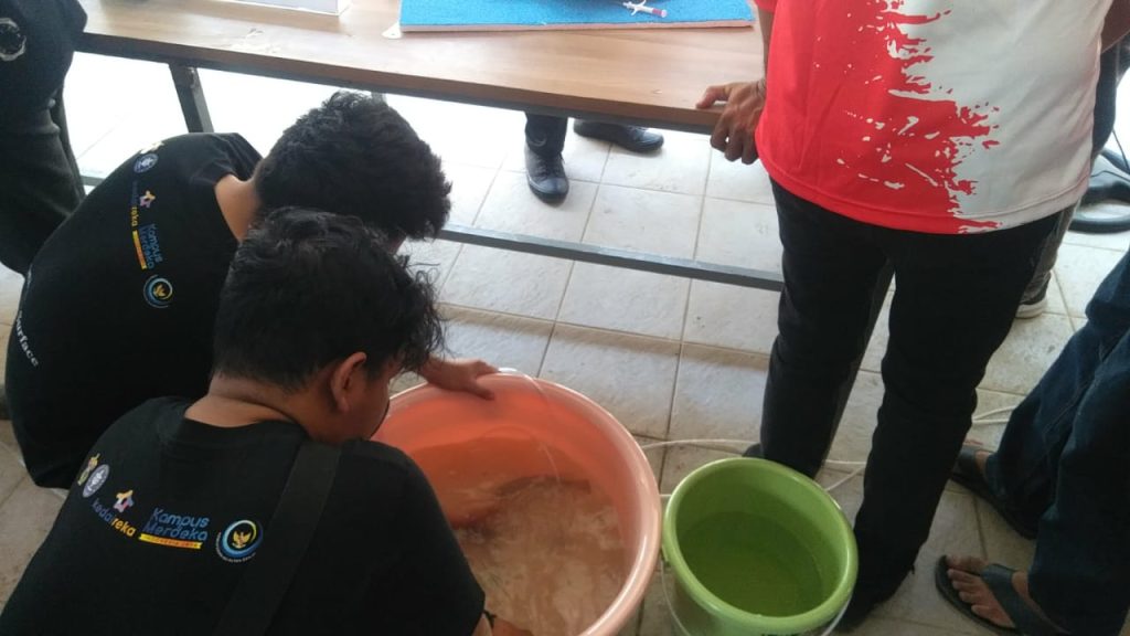 This activity is a part of the Kedaireka program, an inventive endeavor that fosters industry-academia partnerships to promote the advancement of technology useful to society. Prof. Budimawan, DEA., a lecturer at FIKP UNHAS, is the leader of this activity. Comprising Professor Alimuddin, S.Pi, M.Sc. (Lecturer of IPB University), Professor Dr. Siti Aslamyah, MP., Dr. Sitti Fakhriyyah, S.Pi, M.Si., Dr. Irmawati, S.Pi, M.Si., and Andi Haerul, S.Kel, M.Si. (Lecturer at FIKP UNHAS), Dr. Kamaruddin, S.Pi, M.Si. (BRIN researcher), along with Dr. A. Indra Jaya Asaad, S.Pi, M.Sc. (Head of the Research Center for Brackish Water Aquaculture Fisheries and Fisheries Outreach (BRPBAPPP), Ministry of Maritime Affairs and Fisheries).