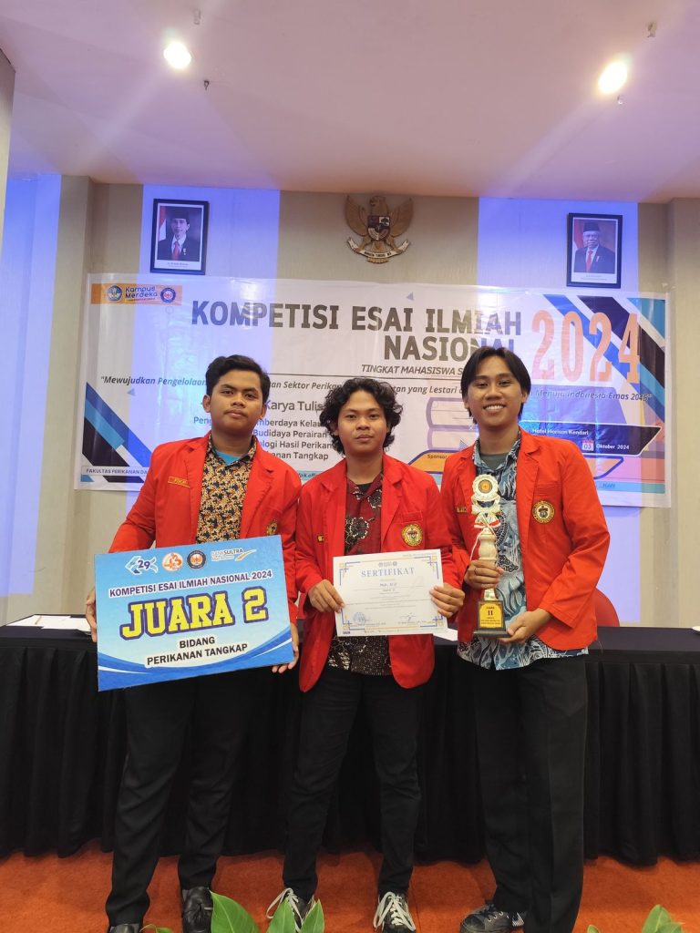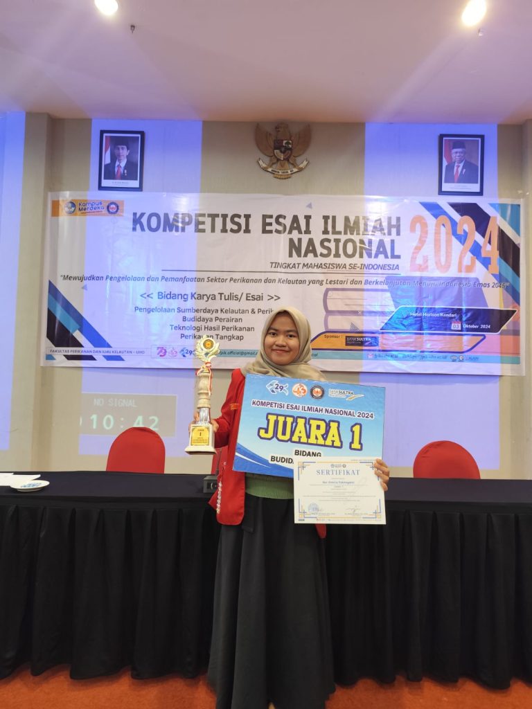 Students of the Faculty of Marine Sciences and Fisheries (FIKP) UNHAS have once again made a brilliant achievement in the National Scientific Essay Competition held by the University of Halu Oleo (UHO) on 3rd October 2024, in Hotel Horison Kendari. By joining this event with theme of “Mewujudkan Pengelolaan Kelautan dan Pemanfaatan Sektor Perikanan dan Kelataun yang Berkelanjutan Menuju Indonesia Emas 2045”, a number of FIKP Unhas teams took home titles in several divisions, showing their intelligence and inventiveness in fisheries science.