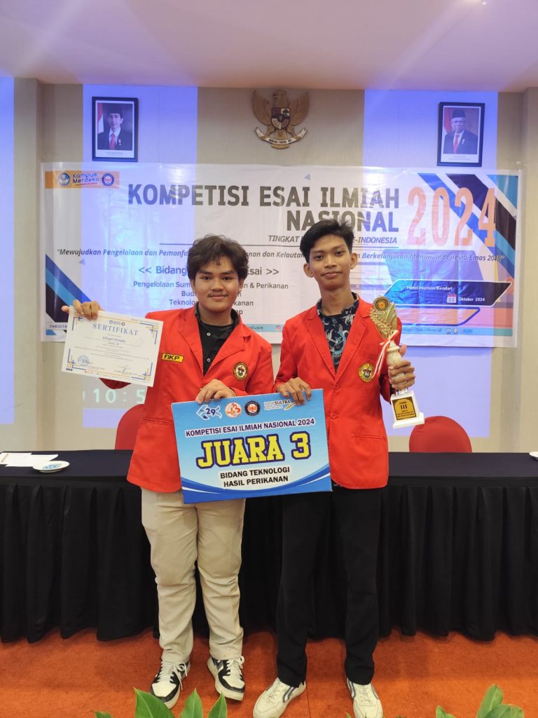 - 3rd place in Fishery Product Technology achieved by a team consisting of Alfryan Reinaldi and Alif Arfiansyah Secar (supervised by Dr. Nursinah Amir, S.Pi., M.P.).