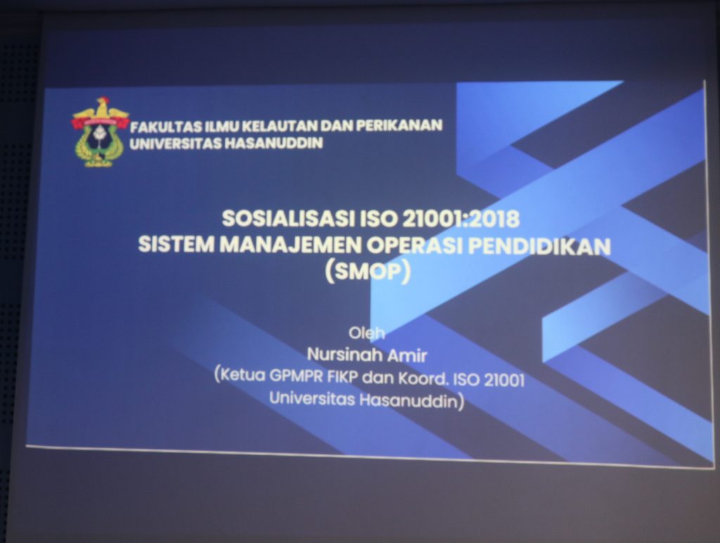 The Faculty of Marine and Fisheries Science (FIKP), Hasanuddin University (UNHAS), organized a Socialization of ISO 21001:2018 Education Operations Management System (SMOP) on Monday, January 19, 2026, held at the 2nd Floor Meeting Room of FIKP UNHAS. This activity was part of the faculty’s ongoing efforts to enhance the quality of standardized education governance oriented toward stakeholder satisfaction.