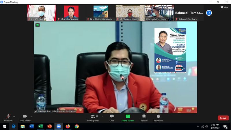 This public lecture discusses “Data- Model Integration in Ocean Environment”. This activity took place at 09.00 WITA offline with strict health protocols in the Meeting Room 2nd Floor FIKP UNHAS and connected virtually through the zoom meeting application, Wednesday (02/03).