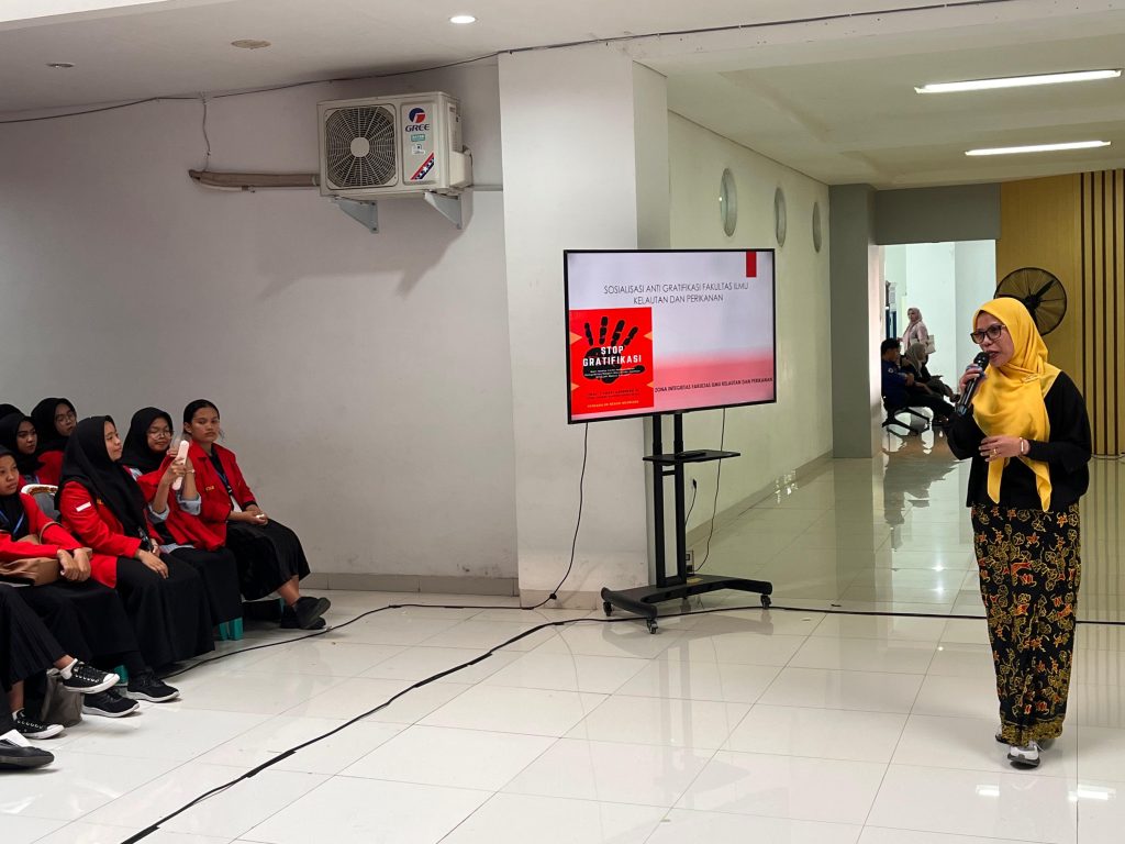 Sosialisasi ini dipaparkan langsung oleh Ketua Gugus Pengendalian Mutu dan Peningkatan Reputasi (GPM-PR) FIKP, Dr. Nursinah Amir, S.Pi., M.P., yang menekankan pentingnya menanamkan nilai-nilai integritas dan etika akademik sejak dini. “Pendidikan bukan hanya tentang pengetahuan, tetapi juga tentang moral dan tanggung jawab. Praktik-praktik tidak sehat seperti gratifikasi harus dicegah karena dapat merusak dunia pendidikan,” ujar Dr. Nursinah dalam pemaparannya.