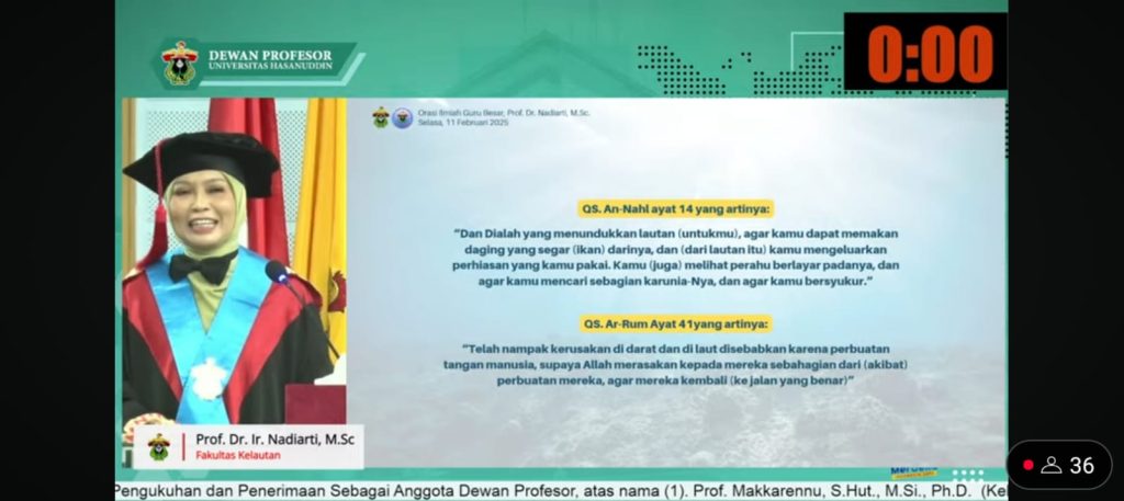 Universitas Hasanuddin (UNHAS) kembali menambah deretan guru besar. Kali ini, giliran Prof. Dr. Ir. Nadiarti, M.Sc dari Program Studi Manajemen Sumberdaya Perairan, Fakultas Ilmu Kelautan dan Perikanan (FIKP) yang dikukuhkan sebagai guru besar ke-552, yang spesifik pada bidang Ekologi Perairan. Pengukuhan berlangsung di Ruang Rapat Senat Lantai 2 Gedung Rektorat Unhas pada hari Selasa, 11 Februari 2025.